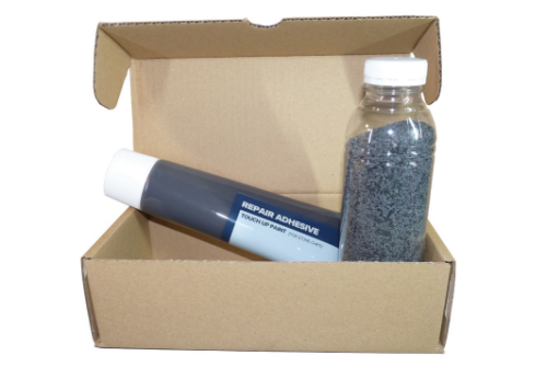 Ремкомплект Metrotile включает в себя каменную крошку и краску под цвет кровли. Используется для восстановления декоративного покрытия, маскировки шляпок гвоздей и саморезов.